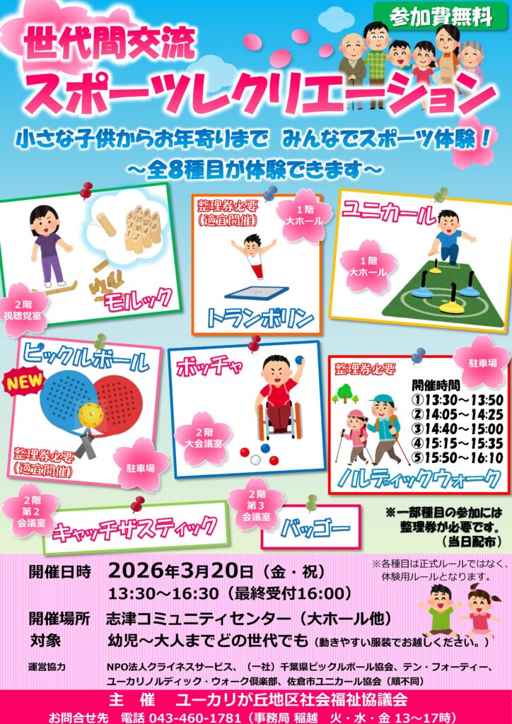 3/20(金・祝) 世代間交流スポーツレクリエーション開催!