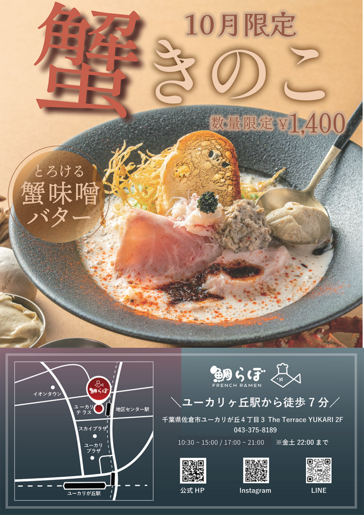 【フレンチラーメン鯛らぼ】 10月限定!カニ味噌ポルチーニ
