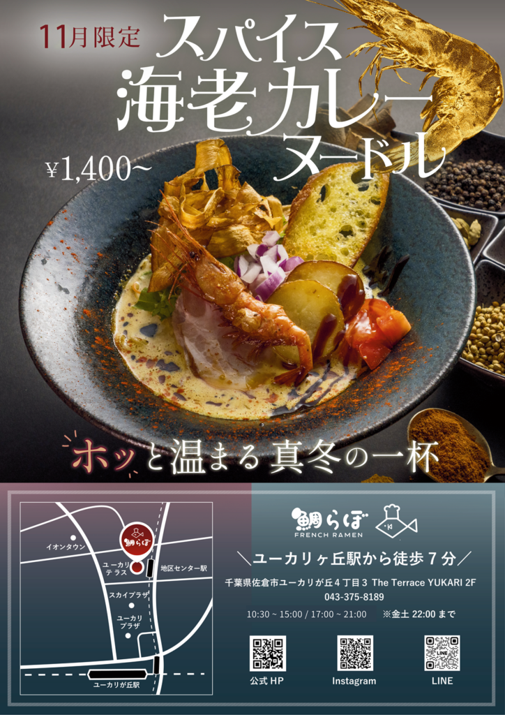 【フレンチラーメン鯛らぼ】 11月限定!スパイス海老カレーヌードル