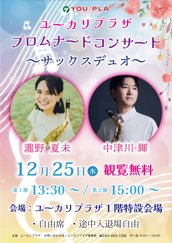 12/25(水)、ユーカリプラザにてプロムナードコンサートを開催します♪