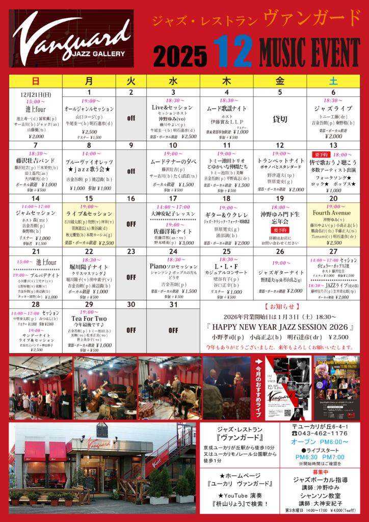 【ヴァンガード】 12月のミュージックイベント