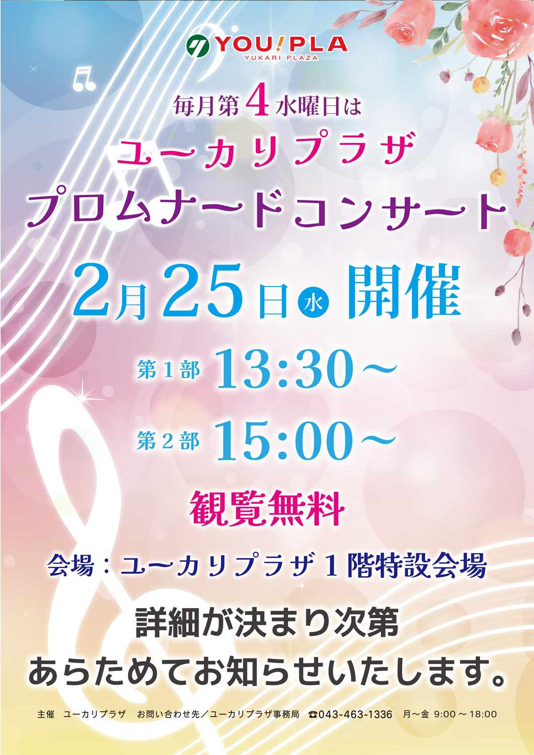 2/25(水)、ユーカリプラザにてプロムナードコンサートを開催します♪