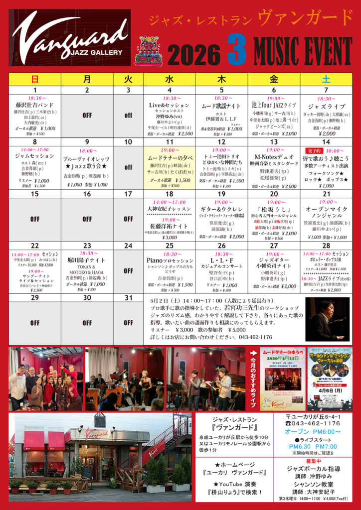 【ヴァンガード】 3月のミュージックイベント