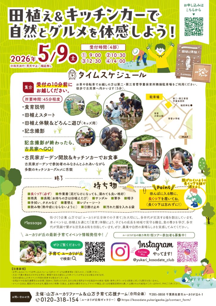 本イベントを通して、食の尊さを学び、多世代が笑顔で繋がる活気ある街を目指しています。ぜひ、農業や自然の素晴らしさを実感してみてください。泥んこになりながら、みんなで一緒に未来の穂を育てましょう。