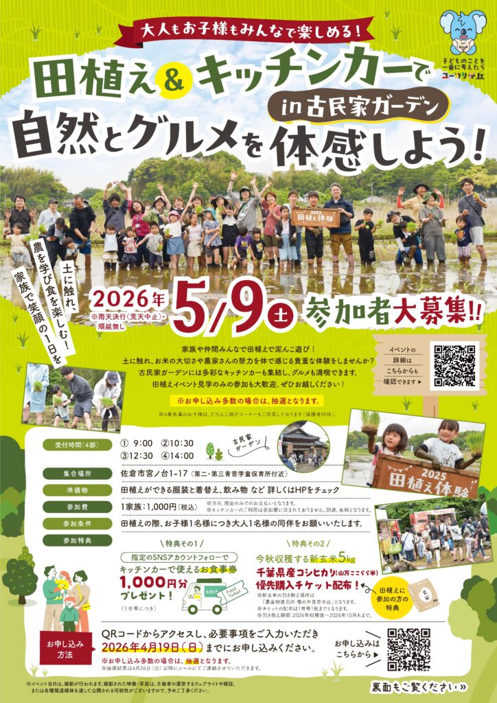 【5月9日(土)開催】田植え&キッチンカーで自然とグルメを体感しよう!in 古民家ガーデン