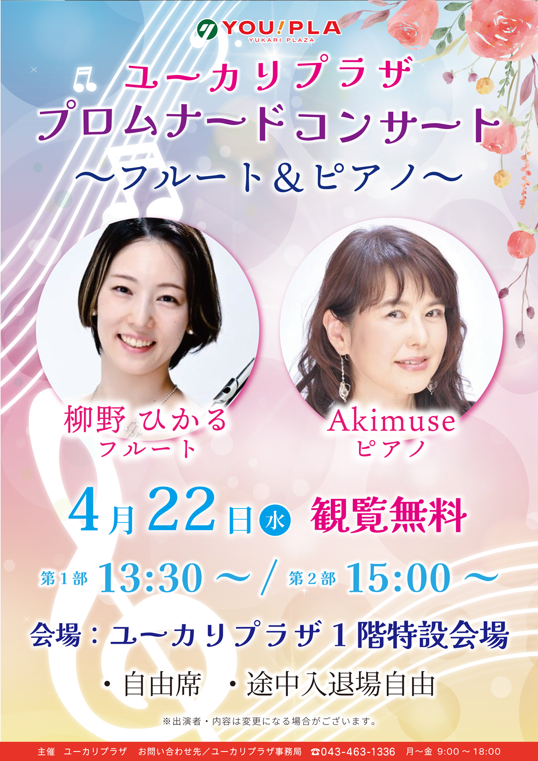 4/22(水)、ユーカリプラザにてプロムナードコンサートを開催します♪