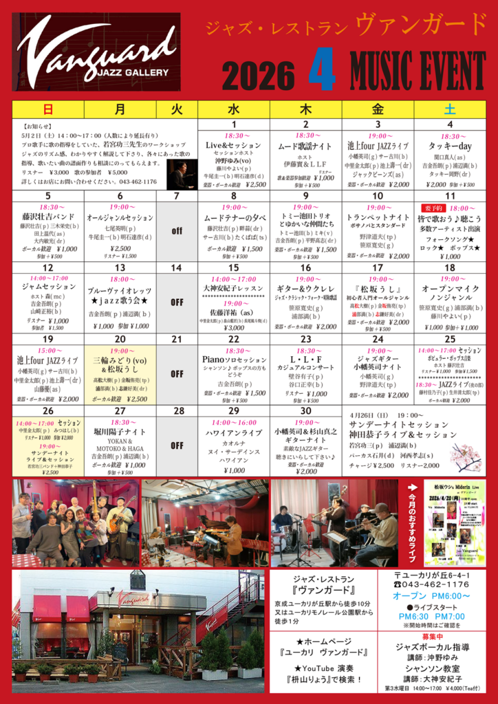 【ヴァンガード】 4月のミュージックイベント