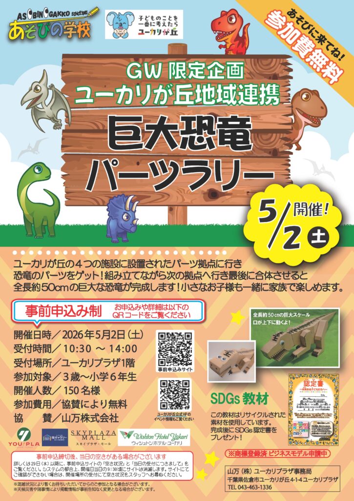 ユーカリが丘エリアの4施設を巡りながら楽しむ、体験型イベント「恐竜パーツラリー」を開催いたします!