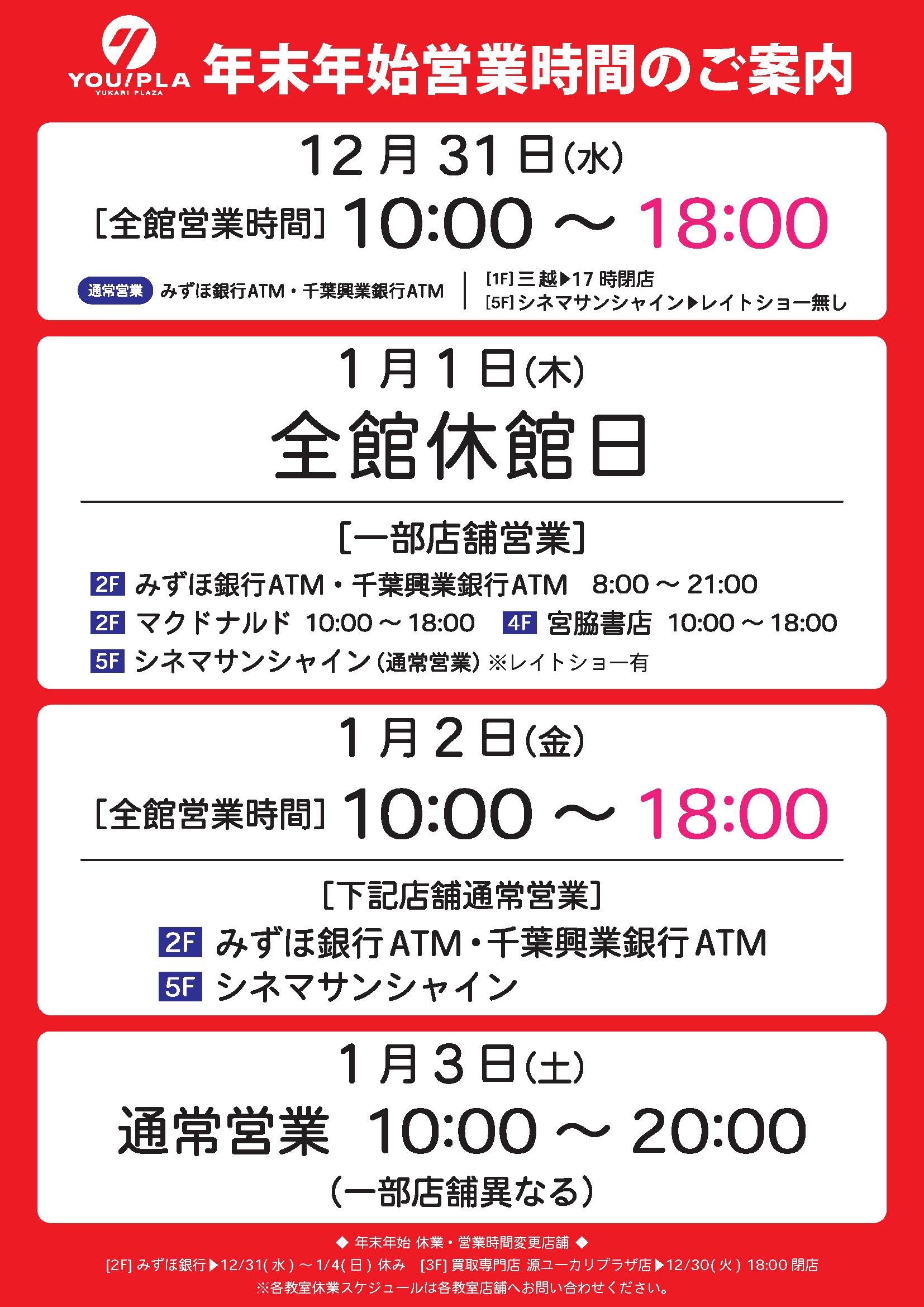 日頃よりユーカリプラザをご利用いただきまして誠にありがとうございます。